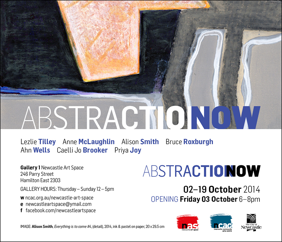Abstraction NOW, references art history while exploring the concepts of what Abstract Art is now. In this exhibition, we can see influences from many different Abstract Art genres, from the Minimalist qualities found in the blue pebble works by Lezlie Tilley and the obsessive markmaking of Bruce Roxburgh’s delicate works on paper to the Abstract Expressionist aesthetic of Caelli Jo Brooker, Anne McLaughlin and Priya Joy’s paintings. While suggestions of Futurism and Cubism are referenced in Alison Smith’s drawings and Ahn Wells’ paintings and wall sculpture.