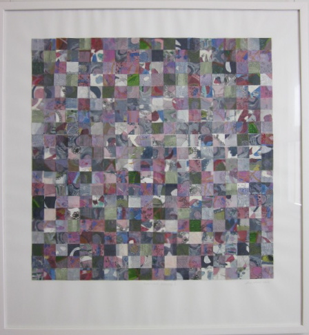 A version of this tension is played out across all of Wells’ work. The Patchwork Drawings for example, utilise the grid pattern to recombine less rigid imagery that has been intuitively drawn, painted, sewn, scratched and pierced. The grid here however, functions less as the traditional modernist ordering principle but more like the intuitive traces of material actions that make up the original images. The grid appears more like an incidental by-product of the process of cutting out and mounting squares and less a deliberate patterning strategy. But it is precisely this kind of attitude to making that pushes Wells’ work beyond the purely formal investigations of ‘square art’. The process in all her work is laid bare, what we experience when looking at these works is not simply the spatial and material qualities of the work but also temporal duration. Time spent with the materials becomes a visual feature of the work. The traces of interactivity speak to the viewer on a physical level, reminding us that looking is not just a visual experience.