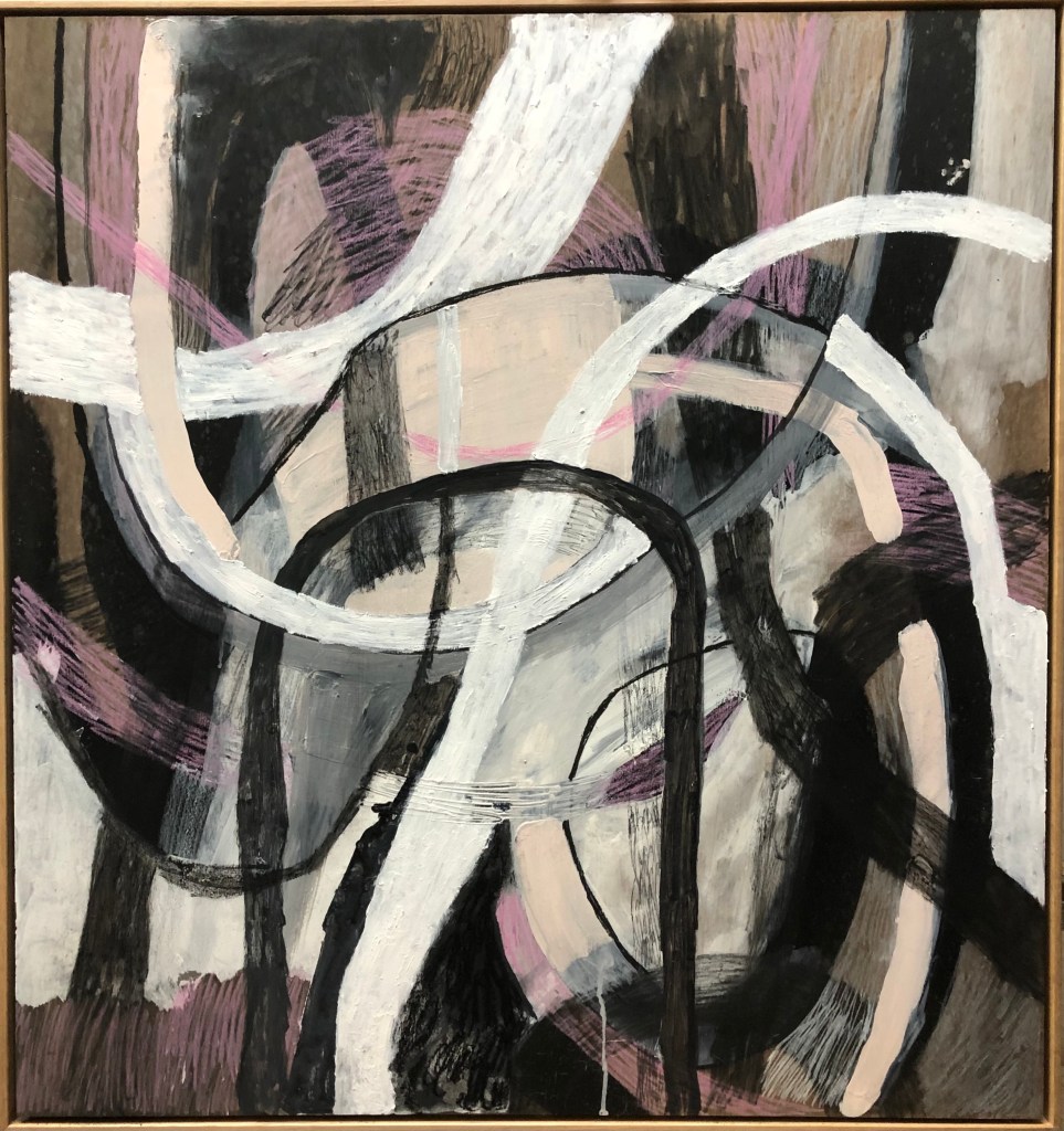 Ahn Wells Somewhere between you and me 2021 mixed media on board 87 x 82cm framed $750.00