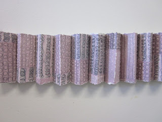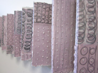 In Protuberance (2009) the paper was drawn on flat with pencils, painted on using gouache, pierced using a drypoint needle and then folded into squares, torn up and folded again into 3D triangles and glued together using an acid-free painting medium. The paper became the basis for a sculptural work that was attached directly to the gallery wall.
