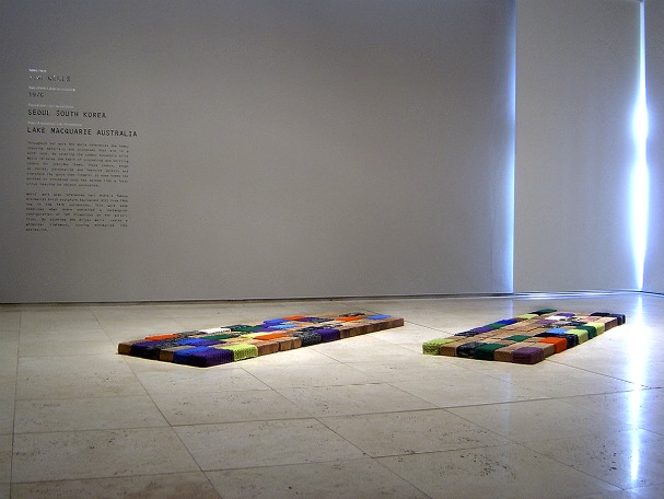 Ahn Wells answers: Sometimes yes, using soft materials such as wool like I am for ‘cozy bricks’ (working title for the installation of crocheted brick covers for Here + Beyond) it clearly references the home. Using a very ‘domestic’ everyday material such as acrylic wool that you can buy from any department store to make a covering for an object that you use to make a home (ie a brick) there is a clear connection between materials and sense of place. I consciously choose to use this everyday material because it is so easily available to me, mum has supplies of acrylic wool in the home for her use. However in the past, I haven’t been conscious of using materials to reflect a consciousness of place. I have chosen materials because of the way will respond to the process of making and how they will make respond to the gallery space.